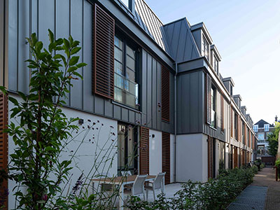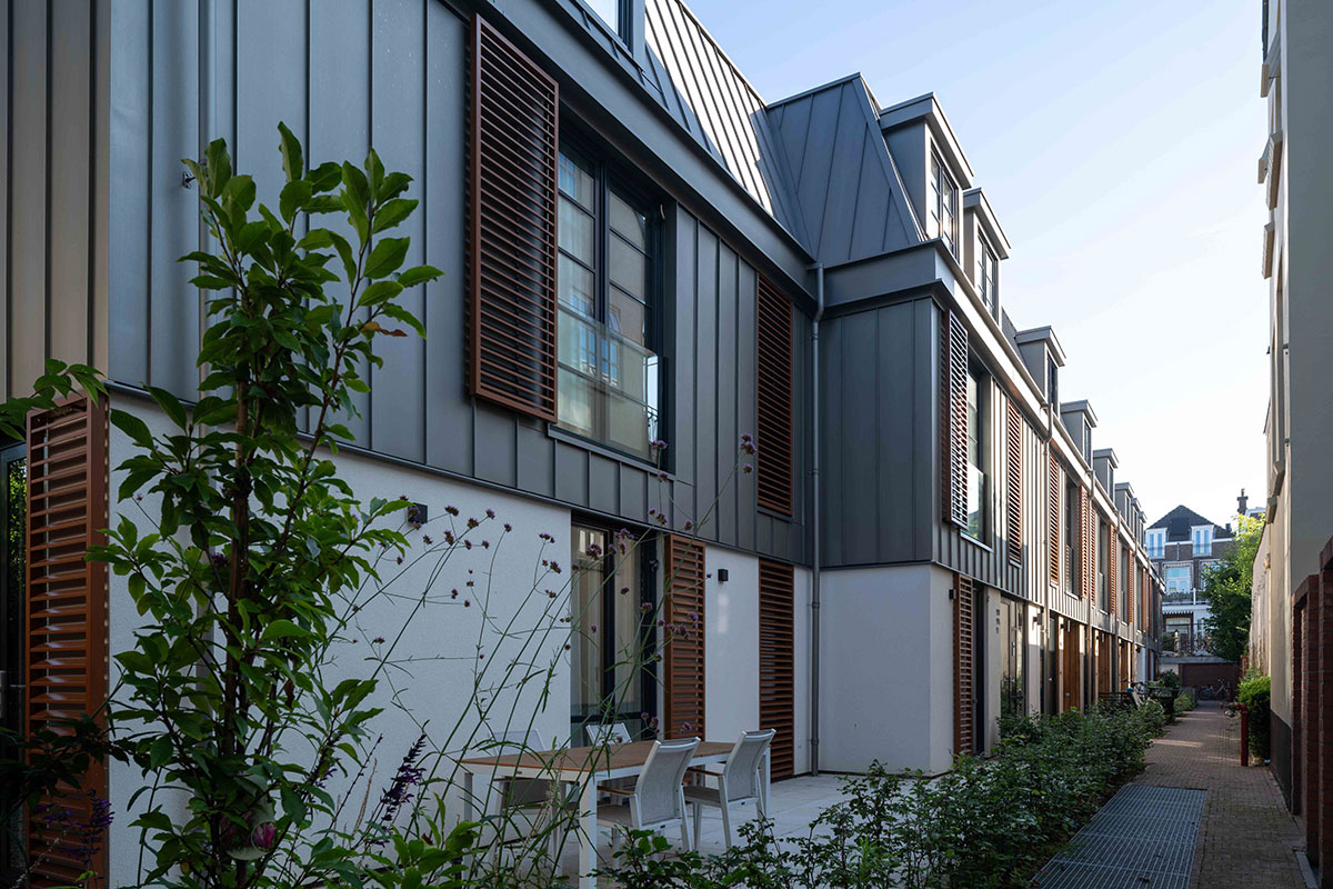 Koninginnehof is een kleine nieuwe verbogen community middenin een typisch 19de -eeuws binnenhof van de Haagse Archipelbuurt. Dit precieze nieuwbouw project op de voormalige opslagloodsenlocatie van het Rode Kruis bevat een gedifferentieerd woonprogramma voor verschillende doelgroepen die de woningtypologie en -behoefte van de Archipel weerspiegelt. Families, koppels en ouderen hebben hier hun intrek genomen en zorgen voor een mooie diversiteit aan bewoners. De animo bij inschrijving was groot. Honderden kandidaat-kopers schreven zich in voor de 10 nieuwbouwwoningen, 4 grote grondgebonden hof-woningen en 6 appartementen. Koninginnehof is een inclusieve, duurzame bijdrage voor het stedelijke (binnen)landschap, de duurzame woningvoorraad en flora & fauna. De ooit geheel verharde binnenplaats met na-oorlogse loodsen is getransformeerd naar een groene binnenhof met een fijn gedetailleerd bouwblok met daarom kleine voortuintjes, beknopte achtertuinen en een voetgangers ontsluiting die hofjes eigen zijn. Een verstilde plek. Altijd zon, lekker en geborgen buiten of in je huis. Geen zicht- en hoorbare auto’s en installaties. Alles is grotendeels, onder een goede gronddekking, onder het maaiveld verborgen in een kelderbak die exact alle erfgrenzen raak. De bouw was geen sinecure en een chirurgische precisiewerk. Het werk startte, na een zorgvuldige participatie met omwonende, met het maken en graven van een ruim 3m diepe bak. Het fundament van de hele hof die voorziet in ruime parkeergelegenheid, bergingen, installatieruimten, een WKO faciliteert met daarbovenop de ‘groene laag’ en het bouwblok. De toegang tot de parkeerkelder gaat via een lift aan de voorgevel, die de uitdrukking heeft van een koetshuis. De hof-woningen hebben vanuit hun eigen trappenhuis een directe ontsluiting naar de ondergelegen ruime parkeer-box en berging. Voor de woningen is aan bijna alles gedacht; compact maar toch ruim en licht in gebruik en beleving. Dat geldt niet alleen voor de mooie lichte woningruimten maar ook voor de tuintjes die water bufferen en vergroeiing en fauna stimuleren. De uitstraling, detaillering en massa van de Koninginnehof voelt verfijnd en passend in haar omgeving en is acht stramienen en drie bouwlagen groot. Aan de voor- en achterzijde heeft het twee charmante topgevels met daar tussenin een gevelstructuur van één bouwlaag met een twee-laagse kap. De woonruimten zijn allen direct met de omgeving of buitenruimten verbonden of toegankelijk gemaakt. Hierdoor ontstaat er een levendige dynamiek waarbij je plezierig het gebied inloopt, makkelijk buiten bent, maar ook van binnenuit fijn naar buiten kijkt naar bijzondere bomen en karaktervolle achterkanten van de Archipel. Die verfijning zit ook in de aandacht voor de details en het gebruik van duurzame en circulaire materialen, welke tezamen met de complete programmering de plek toekomstbestendig maken en voluit betekenis geven aan het wonen in een groene (woon)long.